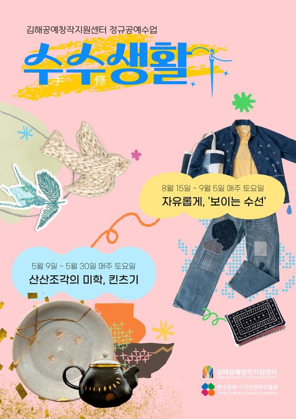 문의 사항은 전화 055-340-7054. 김해공예창작지원센터 담당자는 "현대인의 일상 가까이에서 공예를 쉽게 접하고 활용할 수 있는 분야로서 '수선공예'를 널리 알리고자 마련된 교육이니 많은 분의 관심과 참여를 바란다"고 말했다.
