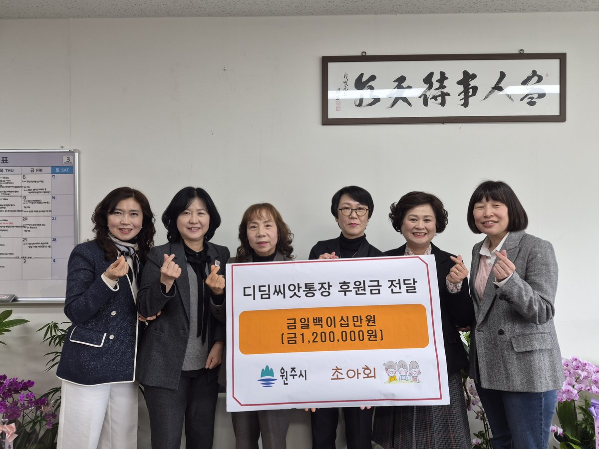 [아시아월드뉴스] 초아회는 지난 16일 회원들과 함께 자립 아동 지원을 위한 디딤씨앗통장 후원금 120만원을 원주시에 전달했다.