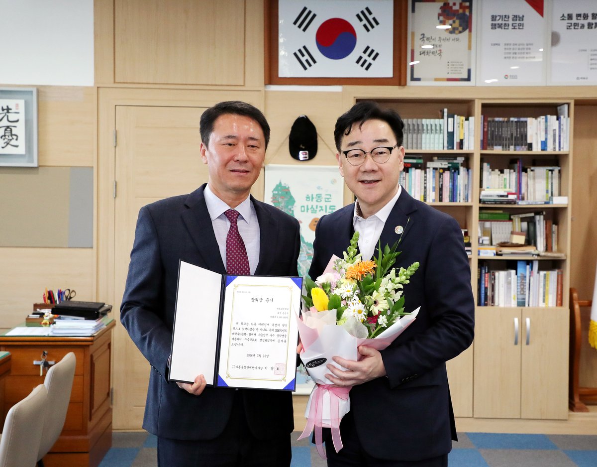 [아시아월드뉴스] 하동군장학재단은 지난 17일 군수 집무실에서 관내 고등학생들의 우수한 대학입시 성과를 격려하고 학교의 교육 의지를 높이기 위한 ‘우수학교 장려금’수여식을 가졌다.