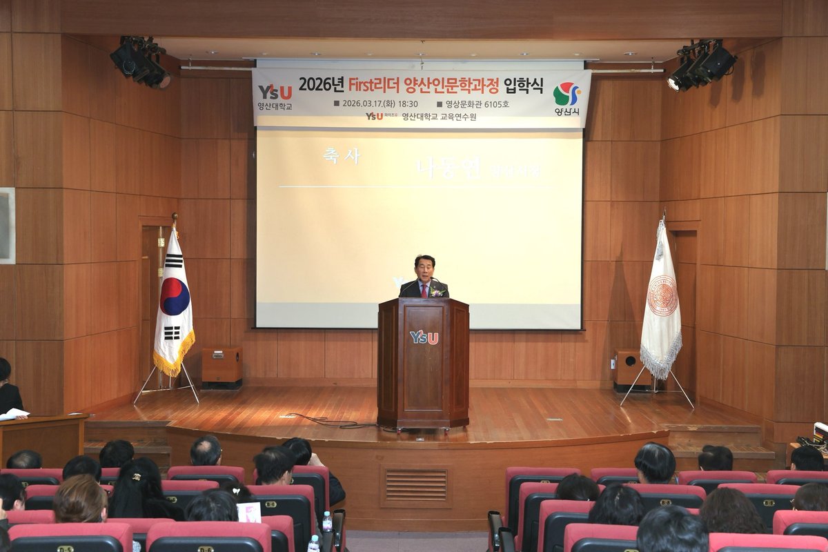 [아시아월드뉴스] 양산시는 지난 17일 영산대학교 양산캠퍼스 영상문화관에서 2026년 First리더 양산인문학과정 의 입학식이 개최됐다고 밝혔다.
