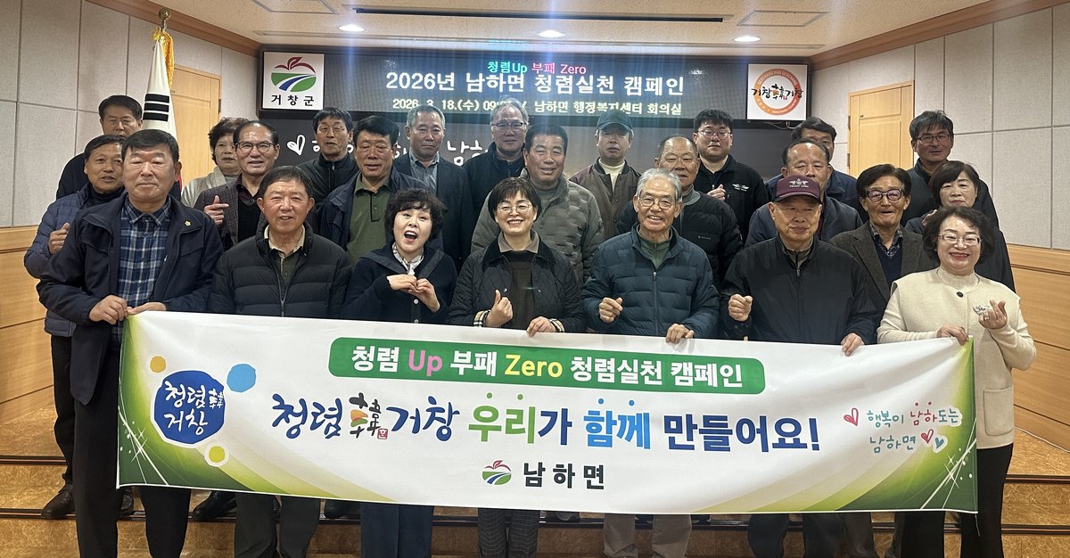 [아시아월드뉴스] 거창군 남하면은 지난 18일 행정복지센터 회의실에서 남하면 이장협의회와 함께 '2026 청렴 실천 캠페인'을 개최했다.