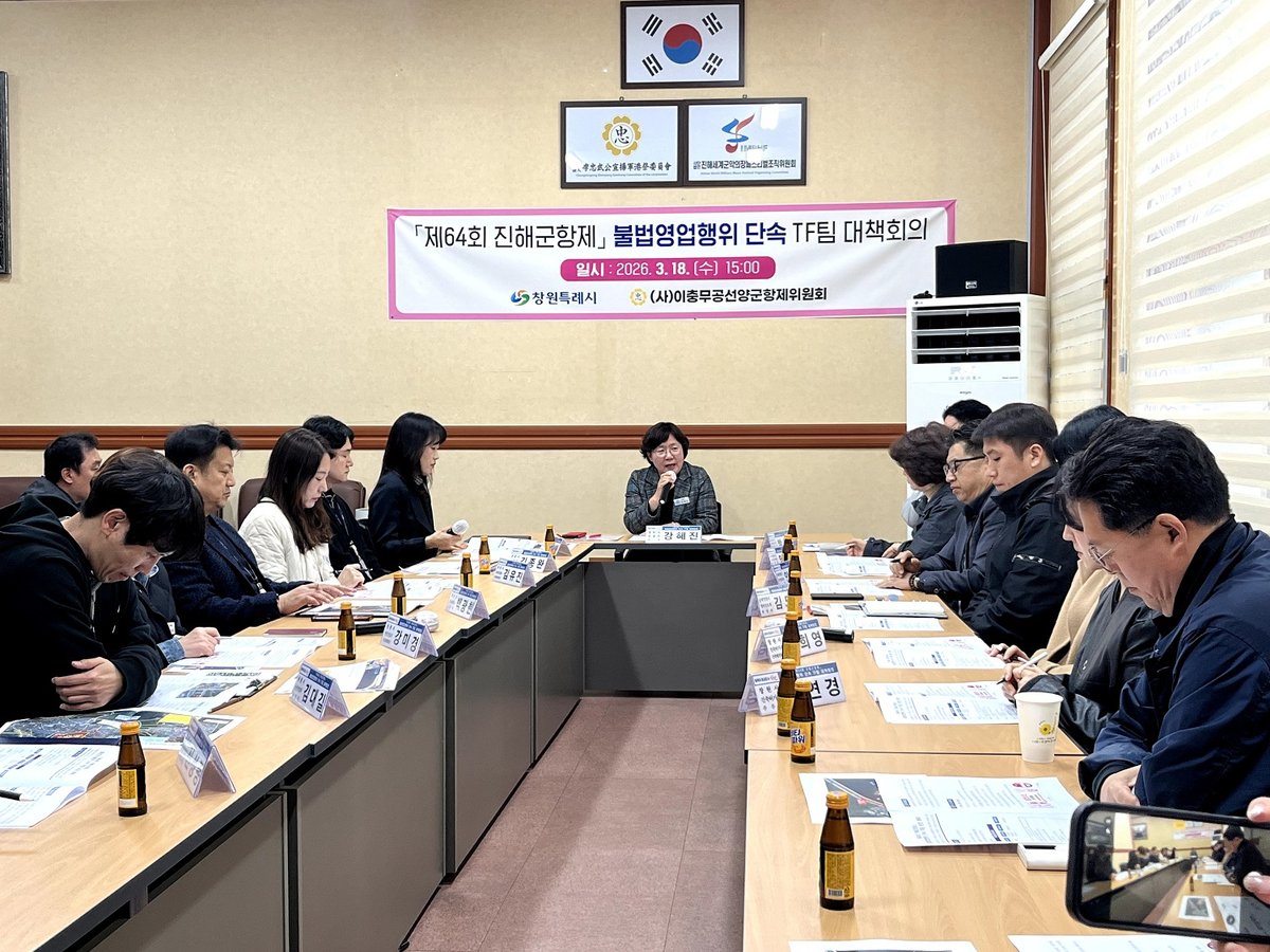 [아시아월드뉴스] 창원특례시는 제64회 진해군항제 기간 축제장 일대에서 발생할 수 있는 불법 영업행위를 예방하고 질서있는 축제 환경을 조성하기 위해 18일 불법 영업행위 단속 TF팀을 구성해 회의를 개최했다.