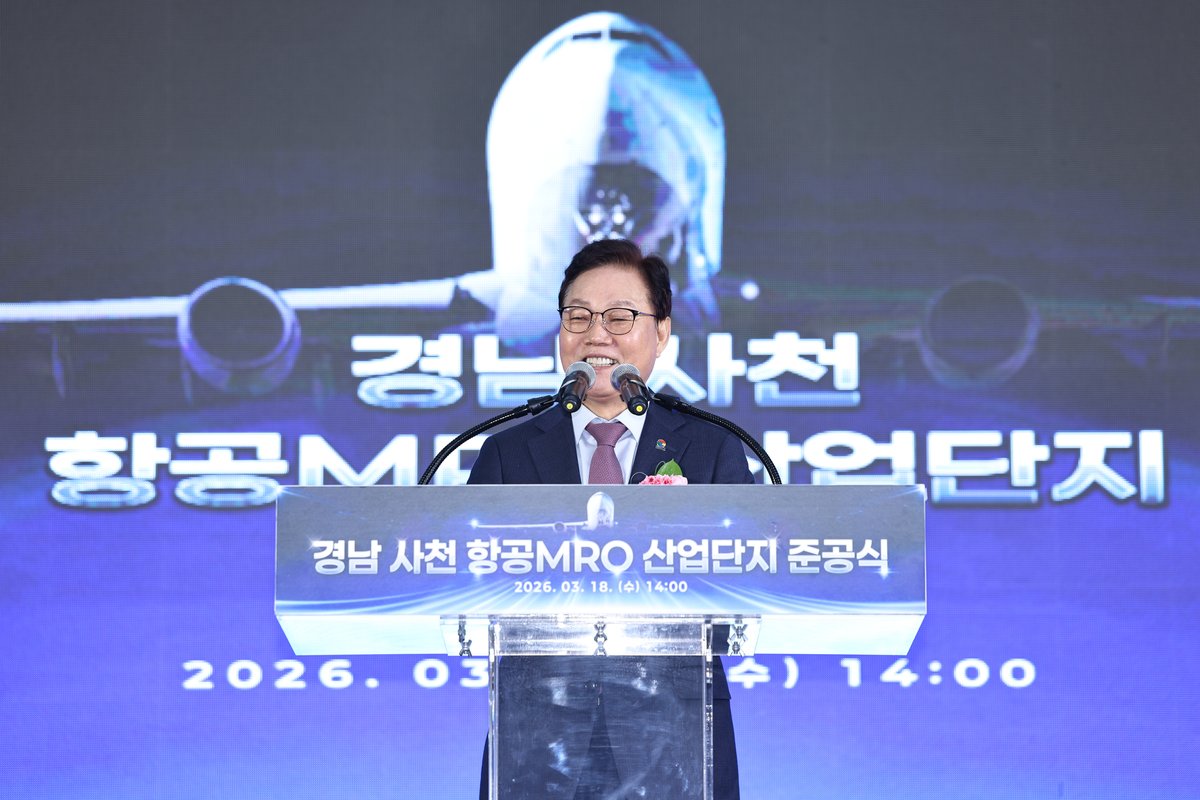 [아시아월드뉴스] 경상남도가 18일 사천 항공 유지·보수·정비 산업단지 준공식에서 “사천 항공MRO 단지는 경남을 대한민국 우주항공의 글로벌 수도로서 자리매김하게 할 것”이라며, 경남을 동북아 최고의 항공정비 거점으로 육성하겠다는 강력한 비전을 선포했다.