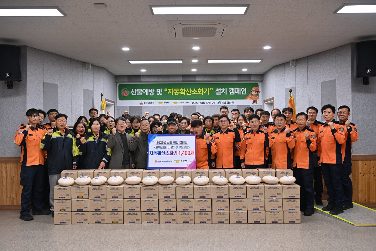 [아시아월드뉴스] 경상남도소방본부는 18일 함양군 병곡면 덕평마을회관에서 산불 예방을 위한 자동확산소화기 무상보급과 화재 안전 캠페인을 실시했다.