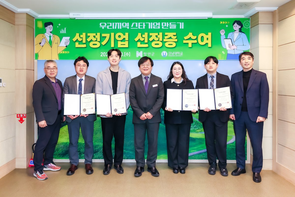 이날 수여식에는 석욱희 부군수를 비롯한 군 관계자와 사업 운영기관인 강남대학교 산학협력단 관계자, 선정기업 대표 등 10명이 참석했으며 선정증 수여와 함께 향후 사업 추진 방향을 공유하는 시간을 가졌다.