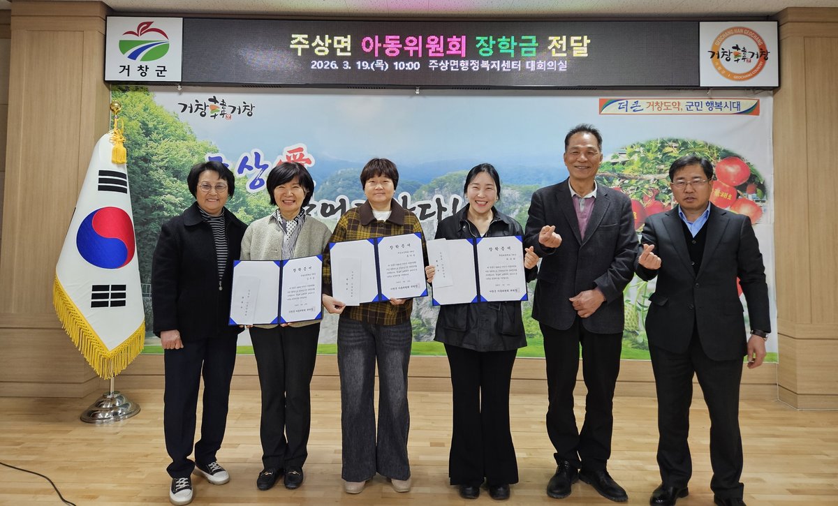 [아시아월드뉴스] 거창군 주상면 아동위원회는 19일 행정복지센터에서 지역 내 아동 3명을 선정해 각각 20만원씩, 총 60만원의 장학금을 전달했다.