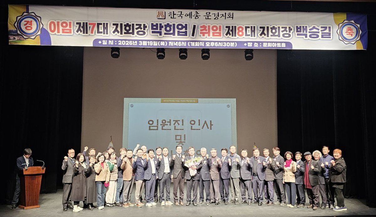 [아시아월드뉴스] 한국예총 문경지회는 2026년 3월 19일 오후 6시 30분 문희아트홀에서 제8대 문경예총 지회장 이 취임식을 개최했다.