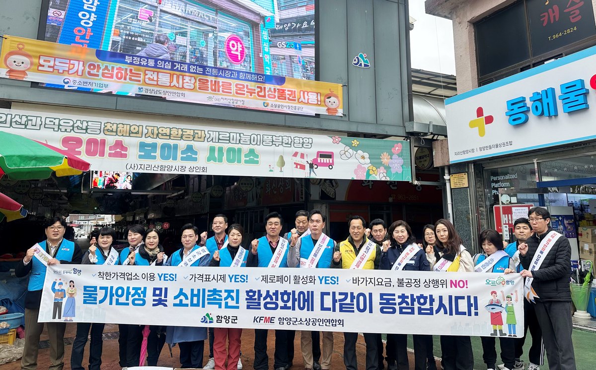 이번 캠페인은 최근 물가 상승으로 인한 군민 부담을 완화하고 지역 소상공인의 매출 증대를 도모하기 위해 마련됐으며 경상남도 및 함양군 소상공인연합회 회원과 관계 공무원 등 60여명이 참여했다.