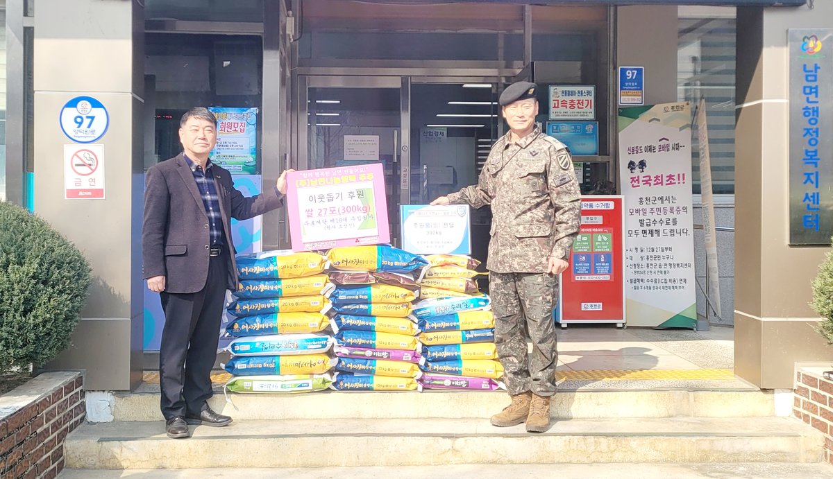 원경상 남면장은 ”바쁜 군 업무에도 불구하고 지역 이웃을 잊지 않고 나눔을 실천해 주신 투호여단장님과 장병 여러분께 깊이 감사드린다“라며 보내주신 쌀은 도움이 꼭 필요한 가정에 소중하게 전달하겠다”고 전했다.