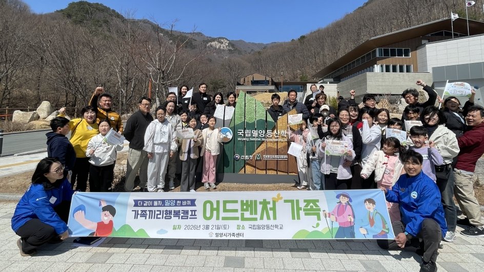 [아시아월드뉴스] 밀양시가족센터는 지난 21일 국립밀양등산학교에서 가족형 체험 프로그램 '가족끼리 행복캠프 - 다 같이 돌자, 밀양 한 바퀴'의 첫 회기를 성황리에 마쳤다고 밝혔다.