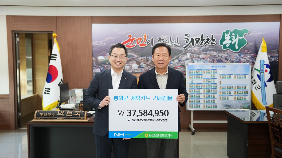 [아시아월드뉴스] 봉화군은 지난 23일 봉화군청 군수실에서 NH농협은행 봉화군 지부장 등 관계자들이 참석한 가운데 “2025년도 제휴카드 적립기금 전달식”을 개최했다.