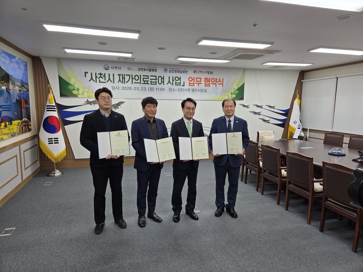 [아시아월드뉴스] 사천시는 23일 시청 열린시장실에서 지역 내 재가의료서비스가 필요한 대상자들의 맞춤형 복지 서비스 지원을 위한 '사천시 재가의료급여사업 업무협약식'을 개최했다.