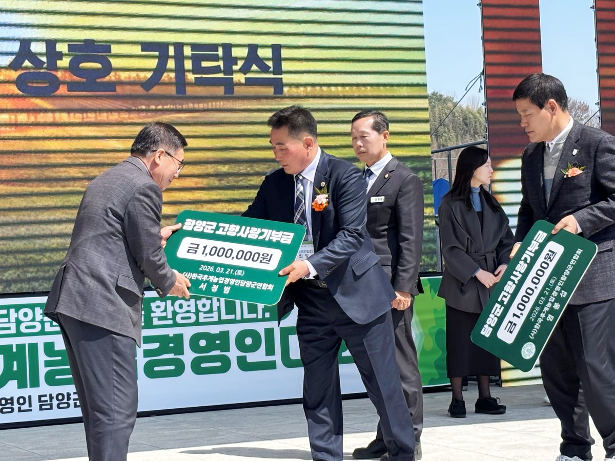 이날 행사에서 함양군과 담양군 연합회 회원들은 서로의 지자체 발전을 응원하며 상호 간 고향사랑기부금을 전달하고 기부금 전달 후 이어진 회원 간 간담회에서는 농업현황과 정책 정보를 공유하는 등 상생 발전할 수 있는 시간을 가졌다.