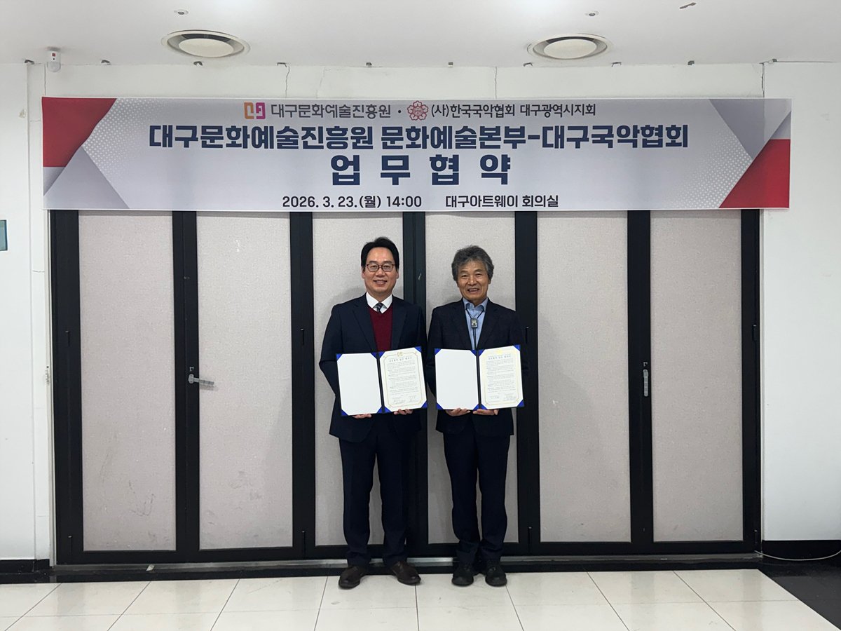 [아시아월드뉴스] 대구문화예술진흥원 문화예술본부과 대구국악협회가 3월 23일 업무협약을 체결했다.